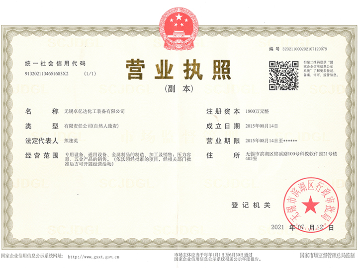 歡迎來到【無錫卓億達(dá)化工裝備有限公司】官網(wǎng)!